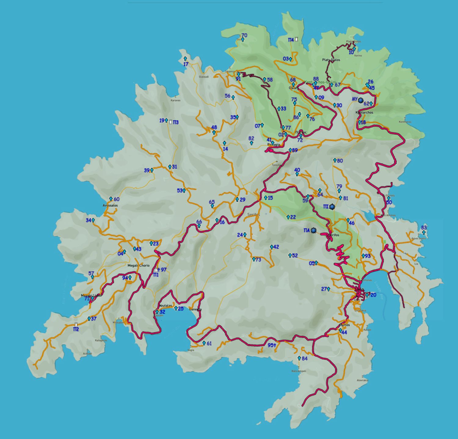 Serifos has over 100 churches, Cyclopean towers, and many other monuments of great interest.