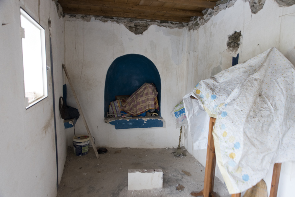 Date of construction: Probably recent, despite humidity damage. Published in 1993, the book by BAPALAS G. and KONTAS G. describes the church as « left to fall into disrepair »; by 2023, it had been partially restored (see photographs). In the summer of 2025, Nikos and Meletis Bofilios organized a complete renovation with a fundraising campaign.