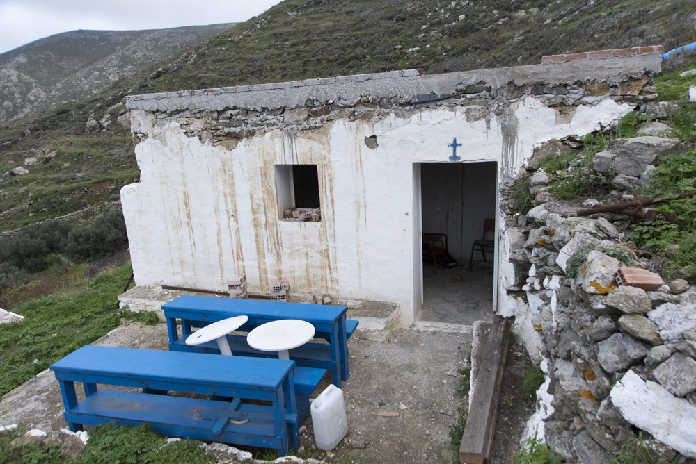 Location: On the road to Pamba, 3.5 km from the Chora-Mega Livadi road, shortly before the junction for Panagia Kamaroti. Path No. 7 from Panaghia leads after 2 km (quite difficult in places) to this road, 500 meters from the church.