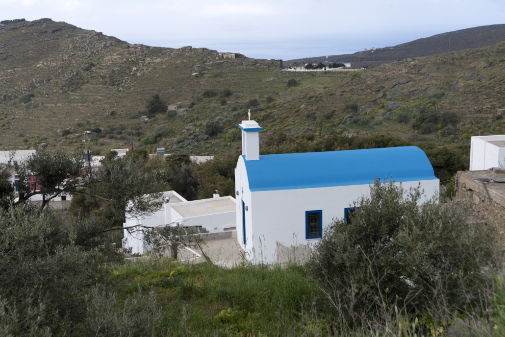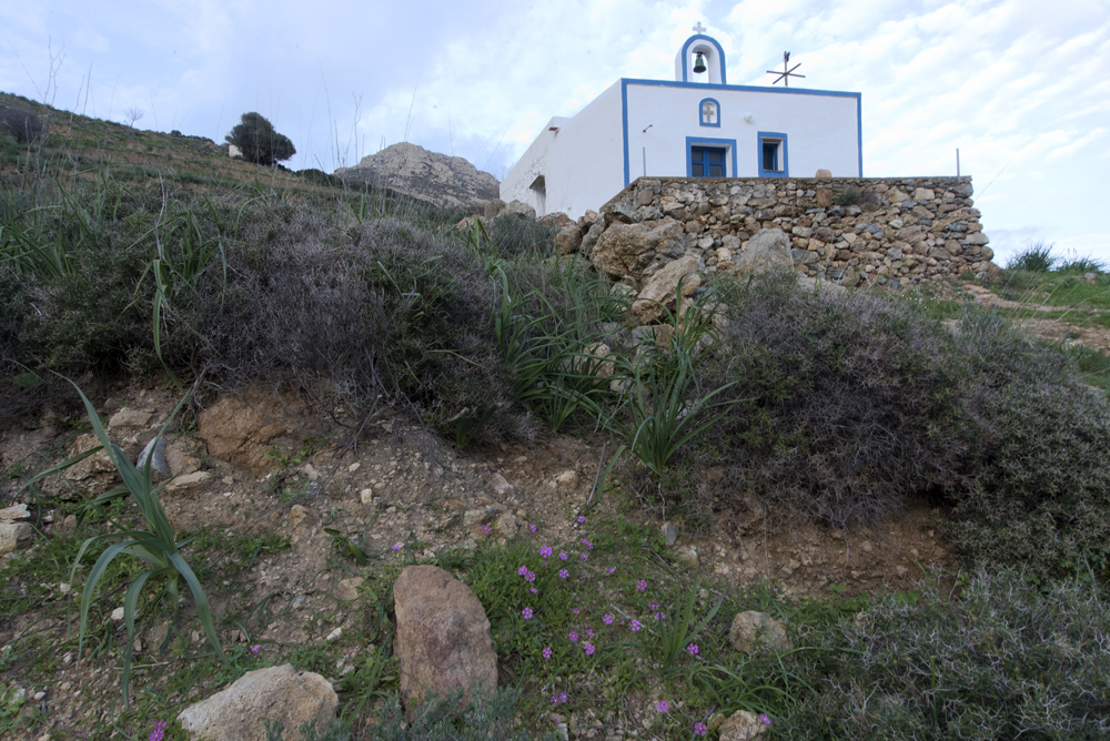 Location: On path no. 4, 1.2 km from Panagia, passing first the church of Agios Stephanos and then the two streams, at the turn towards the church of Agios Vasilios, a barely visible path leads to this abandoned church.