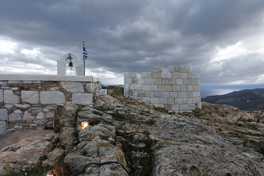 On the road from Chora to Mega Livadi, on the left 400m after the turnoff to Avessalos and 1100m before the turnoff to Koutalas. The dirt road leads to the tower and the adjoining church of Agios Charalambos.