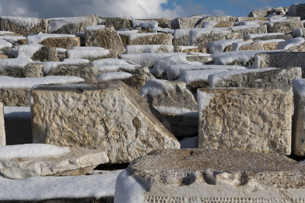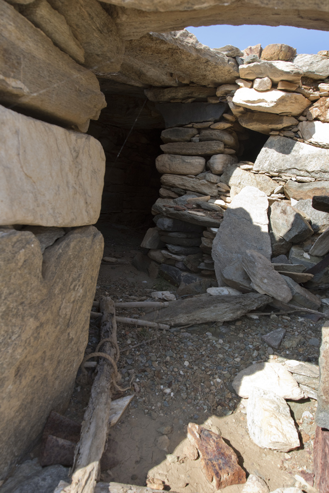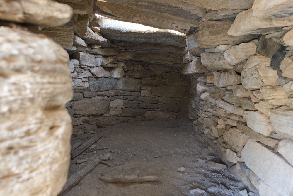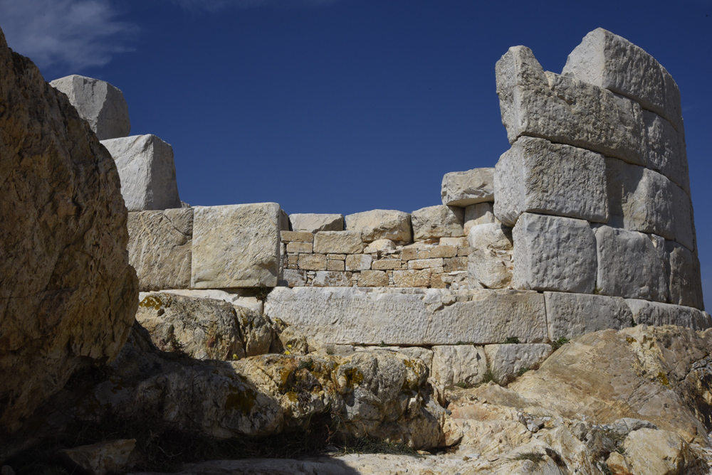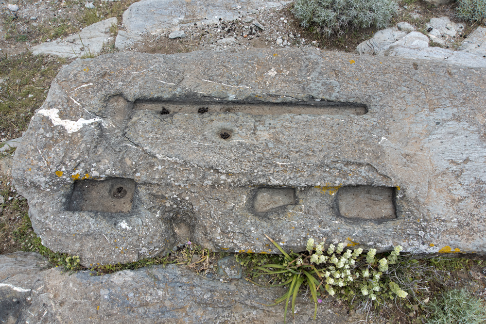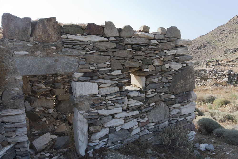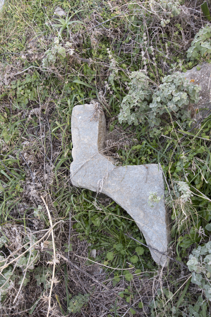 The White Tower is built of local marble, probably from Aspros Kavos. Archaeological artifacts found there date its construction to the 4th century BC, with occupation continuing until the 7th century AD. Its current appearance dates from the development and enhancement program (2007-2013) which revealed this circular tower, 8.34m in diameter and 4.95m high. The original construction is estimated to have had two stories and a height of 12m. The double wall consists of large, unmortared marble blocks on the outside and smaller blocks of various shapes on the inside. An interior spiral staircase, several steps of which still remain, provided access to the upper floor where windows and battlements were located. Blocks from the tower were reused in nearby constructions, notably for the church of Agios Charalambos (such as the pillars of the tower’s doorway) and its annex. The purpose of this tower, given the nearby towers of Psaropyrgos and Flea surrounding the Mega Livadi mining area, was undoubtedly, in addition to serving as a defensive lookout, to monitor and protect the mining activities that were active during this period (Late Classical, Hellenistic, Roman). Several cisterns were discovered around the tower, including one within the church.