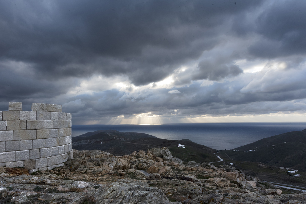 On the road from Chora to Mega Livadi, on the left 400m after the turnoff to Avessalos and 1100m before the turnoff to Koutalas. The dirt road leads to the tower and the adjoining church of Agios Charalambos.